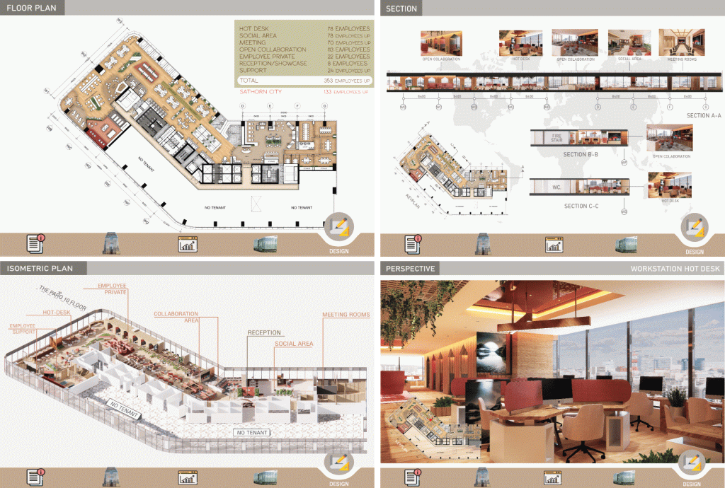 ผลงานของนักศึกษากลุ่ม Workplace Design Studio ซึ่งนำเสนอแนวทางการออกแบบสถานที่ทำงานบริษัท JLL ประเทศไทย
