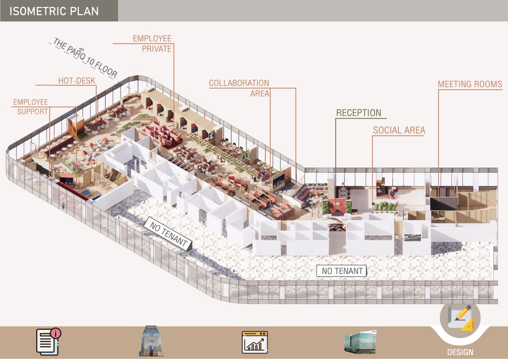 The final project of Workplace Design Studio shows how the student visualises the new office of JLL at the PARQ.