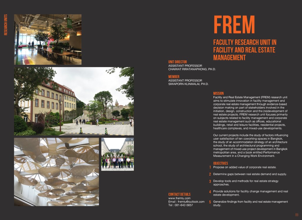 หน่วยวิจัย FREM ได้รับการเผยแพร่ใน Thammasat Design School ebook (หน้าที่ 88-89) สามารถอ่านได้จากลิงค์: https://issuu.com/tds.thammasat/docs/tds_ed_31jul21_ เป้าหมายของหน่วยวิจัยคือ
