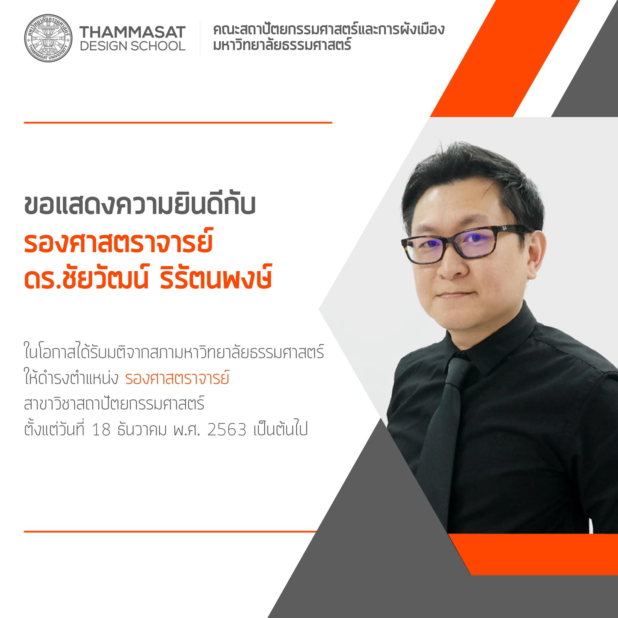 Dr. Chaiwat Riratanaphong was promoted to Associate Professor in Architecture effective 18 December 2020.