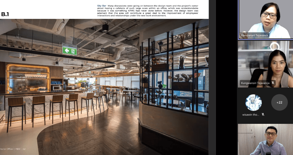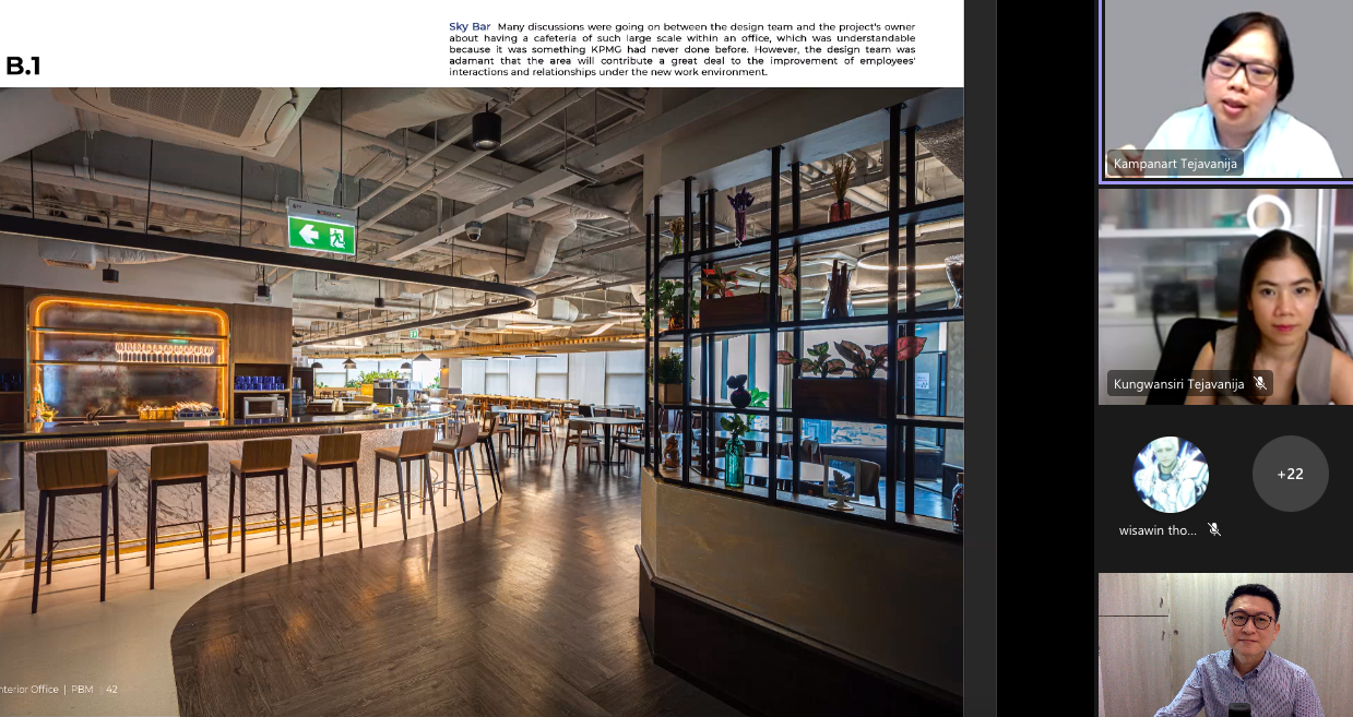 Kampanart and Kungwansiri Tejavanija of PBM (Progressive Building Management ) introduced the new workplace of KPMG and Kasikornbank’ K+ Samyan to students in Facility Management class, Thammasat Design School.