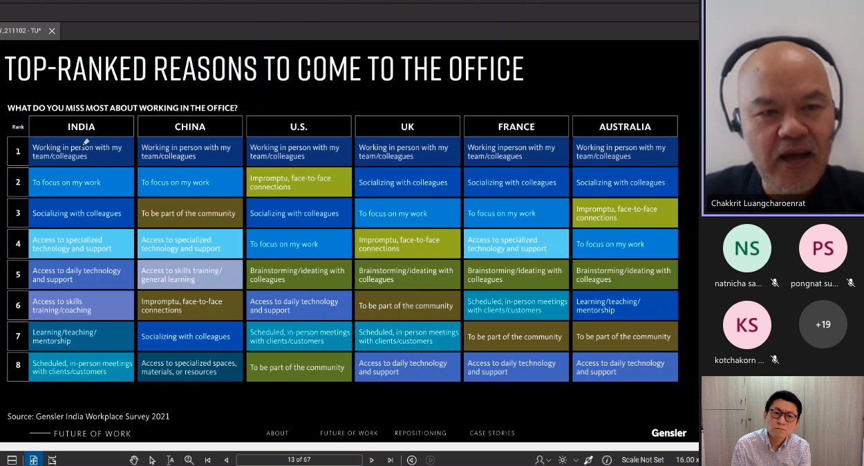 Chakkrit Luangcharoenrat, Studio Director Gensler Thailand, shares his views on the Future Workplace in Facility Management class at Thammasat Design School.