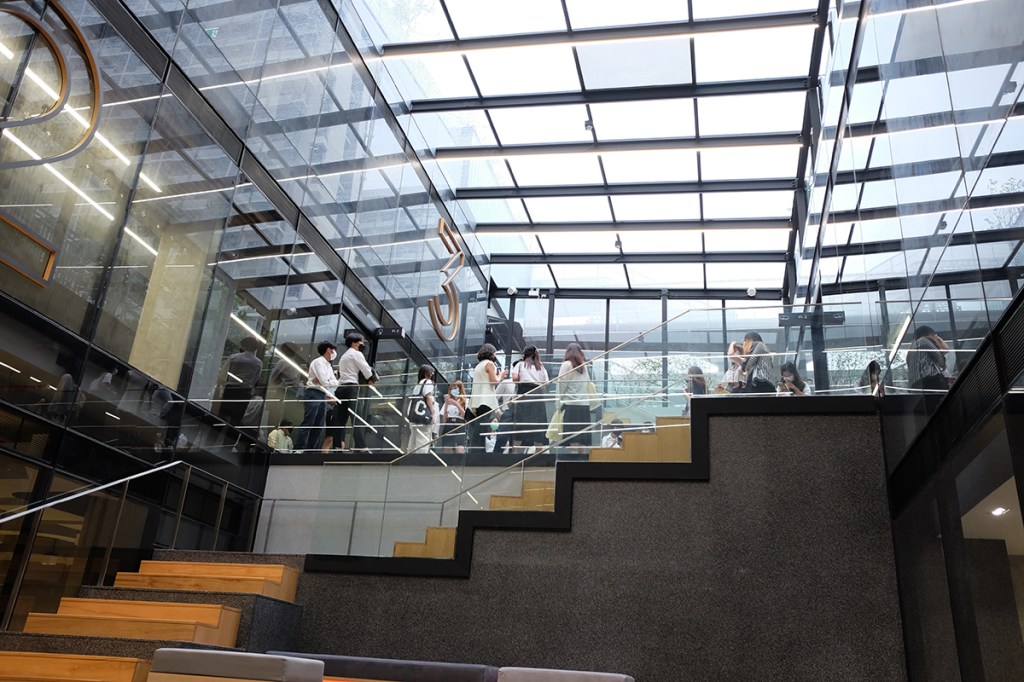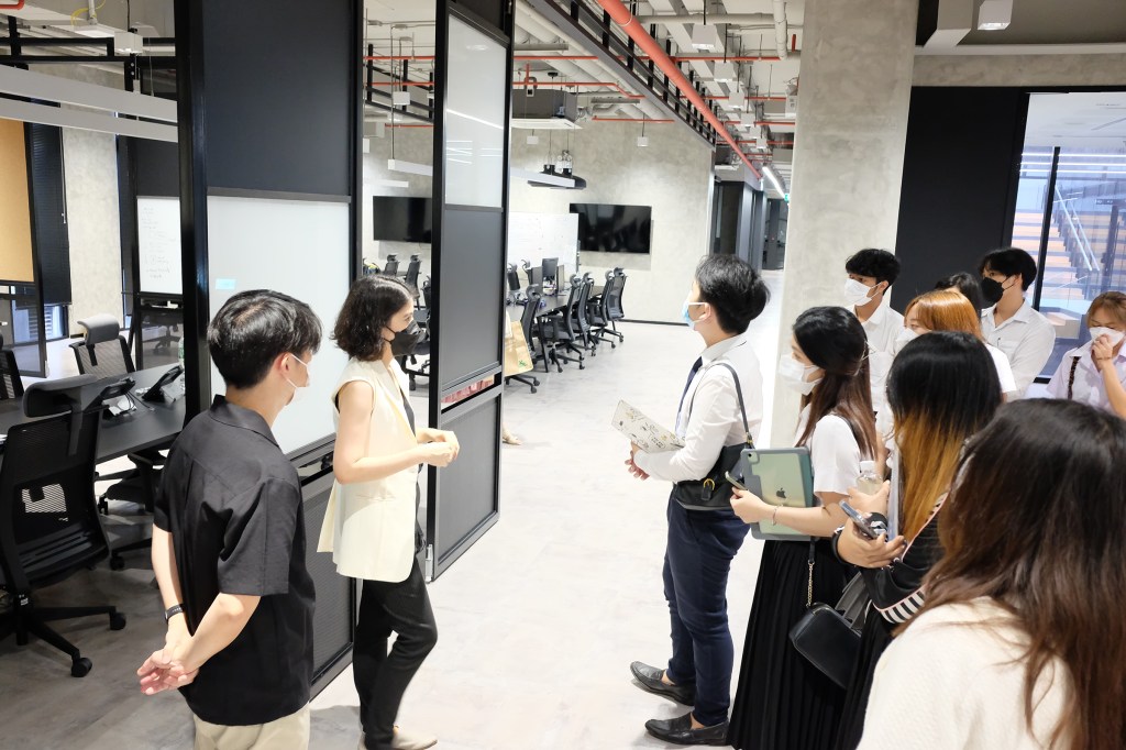 A group of 4th year students in workplace design studio visited K+ building in Samyan designed by PBM. Both designers K.Eve and K.Top kindly provided inspirations and ideas behind the design during the visit.