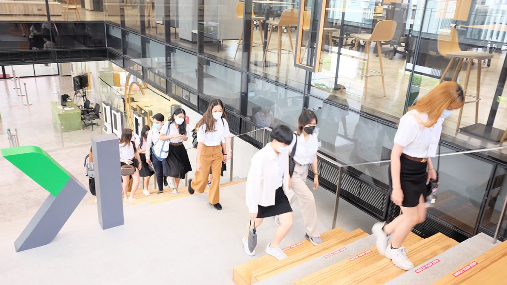 นักศึกษาปีที่ 4 กลุ่ม Workplace Design Studio จากคณะสถาปัตยกรรมศาสตร์และการผังเมือง มหาวิทยาลัยธรรมศาสตร์ เข้าเยี่ยมชมและศึกษาดูงานอาคาร K+ สามย่าน ออกแบบโดยบริษัท PBM (Progressive Building Management) ในการนี้ ผู้ออกแบบคุณกังวานสิริ เตชะวณิช และนโรตม์ กิตติวณิชานนท์ ให้ความรู้และเดินชมสถานที่