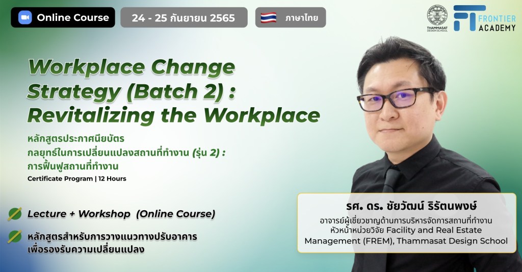 Frontier Academy เปิดอบรมหลักสูตรกลยุทธ์ในการเปลี่ยนแปลงสถานที่ทำงาน รุ่นที่ 2 Workplace Change Strategy (Batch 2) l กลยุทธ์ในการเปลี่ยนแปลงสถานที่ทำงาน รุ่นที่ 2 : การฟื้นฟูสถานที่ทำงาน