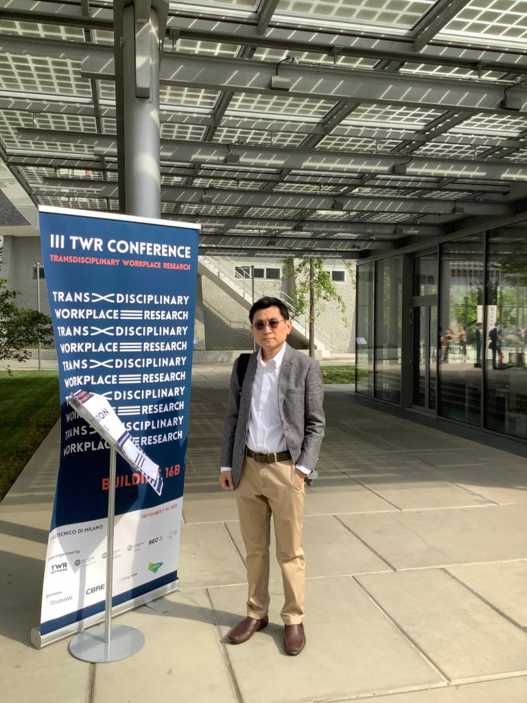 Associate Professor Chaiwat Riratanaphong, Ph.D. presented a research entitled Multifaceted employees’ feedback on hybrid work environment: findings from a news media company in Transdisciplinary Workplace Research (TWR) 2002 in Milan, Italy.