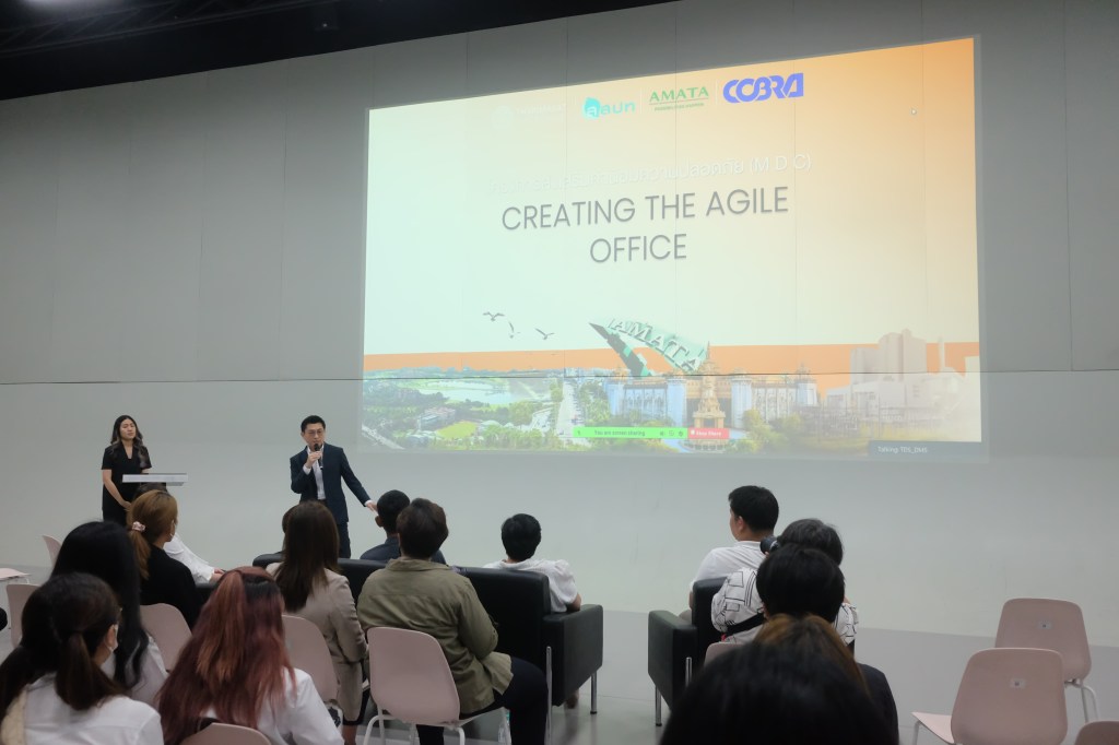 Workplace Design Studio, Thammasat Design School presented project progress as a collaboration with AMATA, Thailand Institute Of Occupational Safety And Health (TOSH) and Cobra International. This project-based learning allows students to propose alternative workplace strategies to cope with challenges of workplace in use. Good feedback from our partners, especially the case organisation.